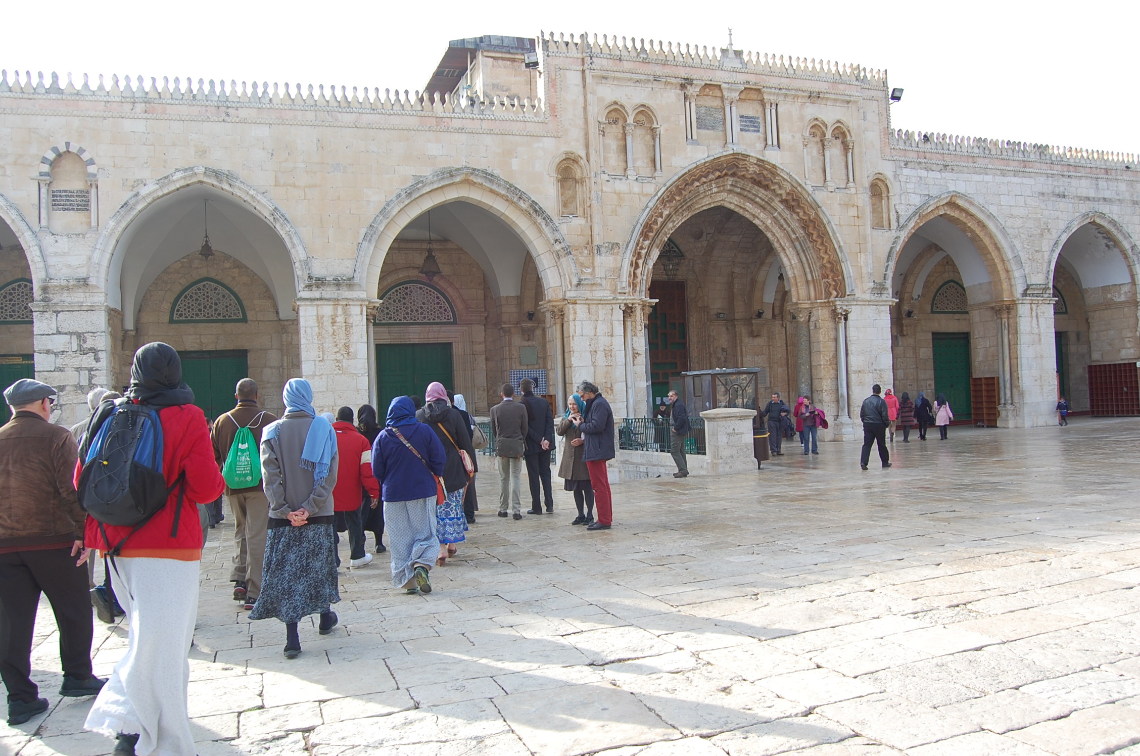 Sunday morning began as any other Sunday morning would begin for many Christians. A wake up call from the alarm, breakfast and coffee or tea, and a dash to put on your finest clothing before going to church. The difference here was that we were making a few stops before visiting St. George’s Anglican Church. We had a mosque visit. And not just any mosque, but THE mosque in Jerusalem: the Al-Haram.